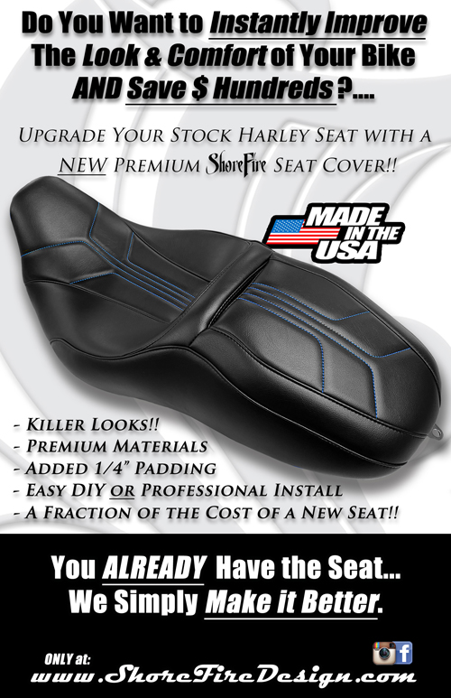 Featuring the SAME Premium Construction as Our Industry-Leading Premium Saddlebag Lid Covers, ShoreFire Seat Covers Offer Added Comfort & Styling at a FRACTION of the Cost of New Seat!!