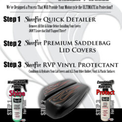 • Personalization: Available in various designs and colors, ShoreFire Premium Saddlebag Lid Covers allow for personalization to match the bike’s accents.